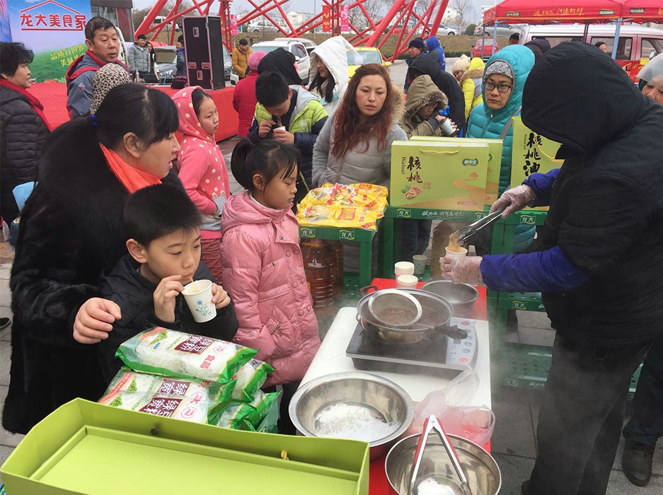 1月7日—9日,銀座萊陽店門前廣場喜氣洋洋。龍大集團組織旗下植物油、肉食品兩大內貿產品進行為期3天的路演,為銀座萊陽店開業助力。